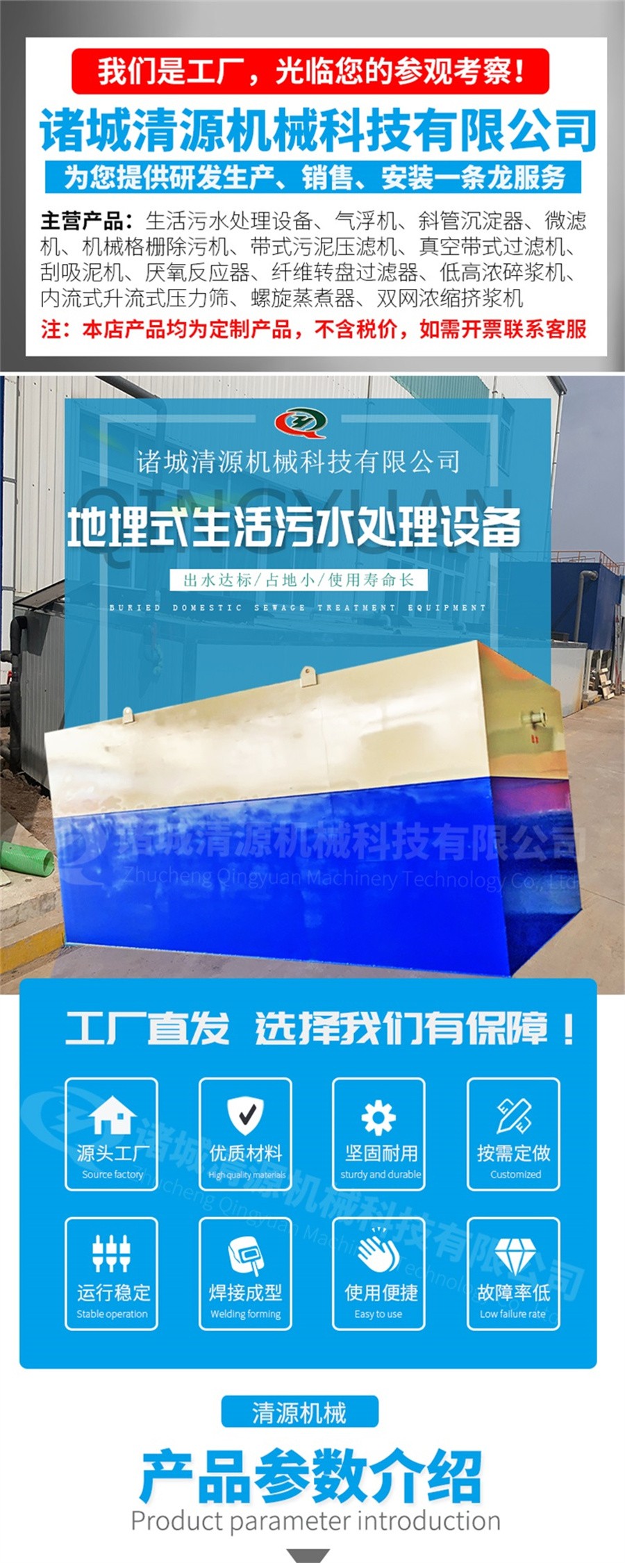 此外我公司還生產地埋式生活污水處理設備,地埋式一體化污水處理設備,洗砂污水處理設備、農村污水處理設備、醫療污水處理設備等其他污水處理設備,歡迎咨詢訂購!