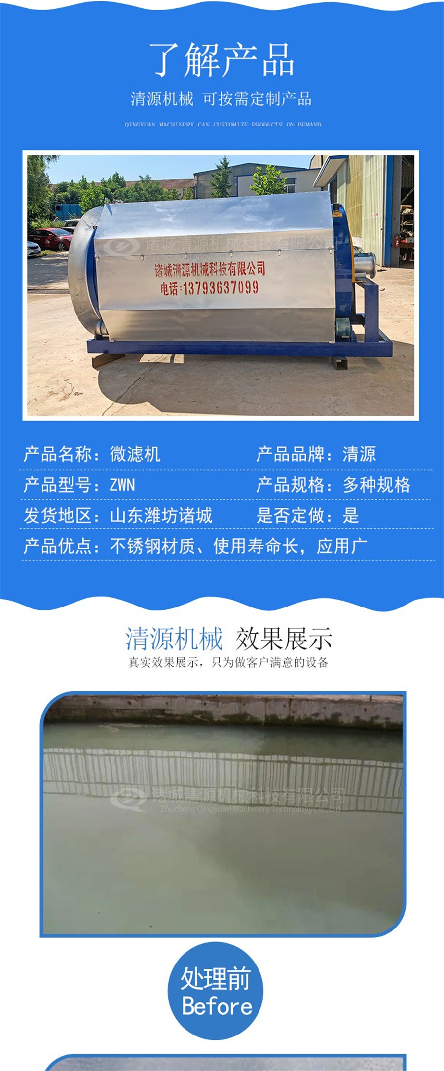 此外,我公司不僅生產(chǎn)微濾機(jī),還生產(chǎn)農(nóng)村污水處理設(shè)備、氣浮機(jī)、固液分離設(shè)備、污泥壓濾機(jī)、造紙?jiān)O(shè)備等其他環(huán)保設(shè)備。