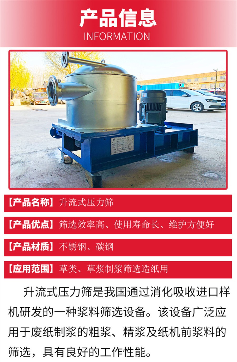 升流式壓力篩作為制漿造紙的通用設備,壓力篩有著不可替代的作用。 我公司生產的升流式壓力篩、內流式壓力篩及多級篩自2001年進入市場以來創下