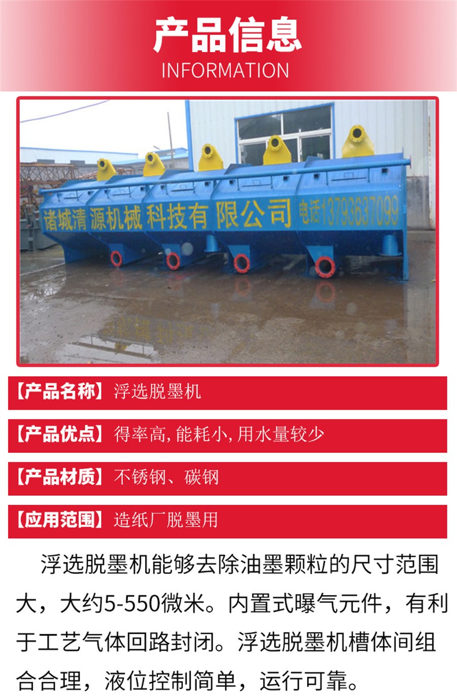 清源浮選機組供應與其它浮選脫墨裝置相比,在同等雜質去除率的前提下,本機組可提高生產能力20%;或者在同等生產能力的前提下,可比其它浮選脫墨裝置獲得更高的紙漿白度和其它灰分的去除,以及相應的長、短纖維損失的減少,動力比其它浮選脫墨槽在相同的產量下降低20%。
